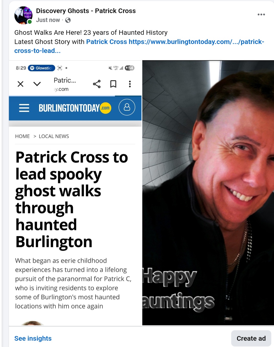 - *Latest Featured Interview "Patrick Cross Leads Spooky Ghost Walks"- Burlington Today News,October 27, 2025